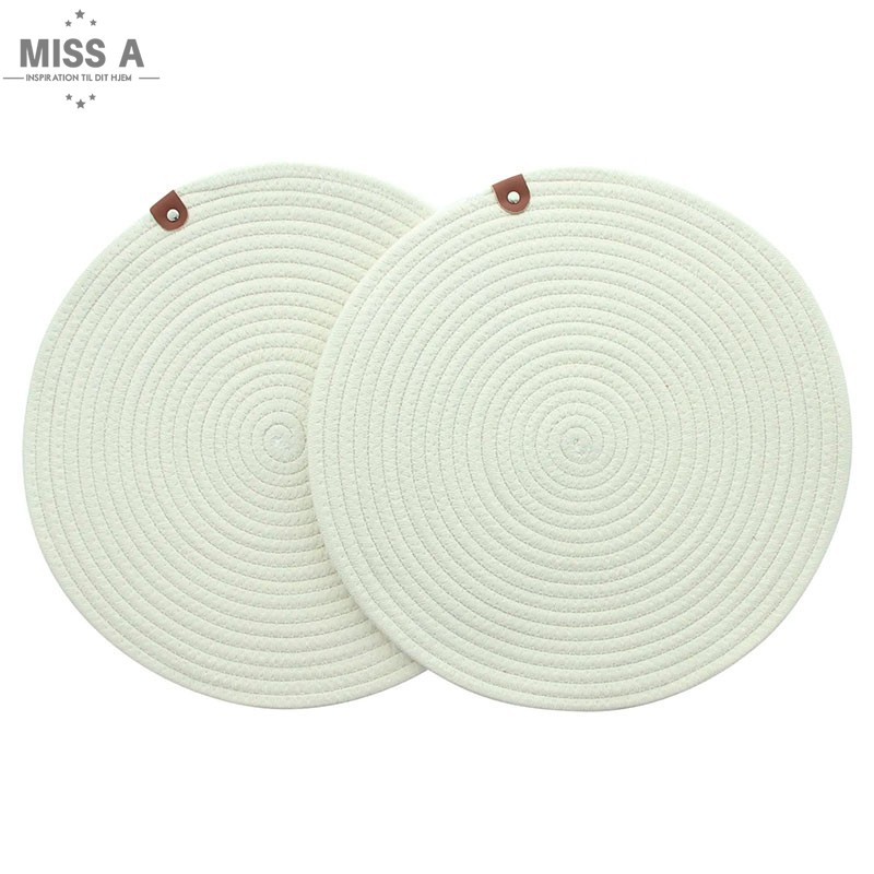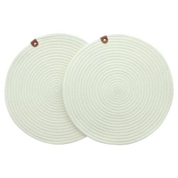 Sæt med 2 stk. runde dækkeservietter der er fremstillet i offwhite bomuld. Diameter 38 cm.