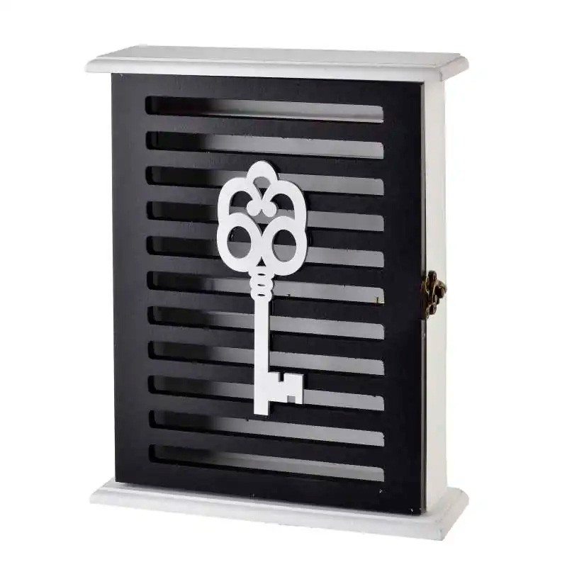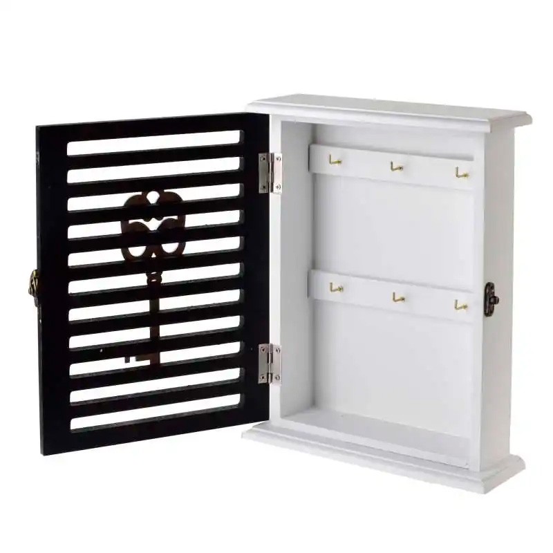 Nøgleskab i hvidt træ med sort front til 6 nøgler