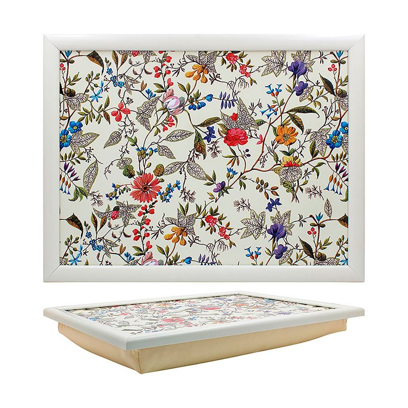 Denne bakke med pude er ideel, hvis man er sengeliggende, eller blot gerne vil sidde foran TV'et og spise. Overdelen er fremstillet af træ, mens puden har polyesterfyld der sikrer, at puden er behagelig at sidde med på benene. 6 x 44 x 33 cm og vejer ca. 600 gram